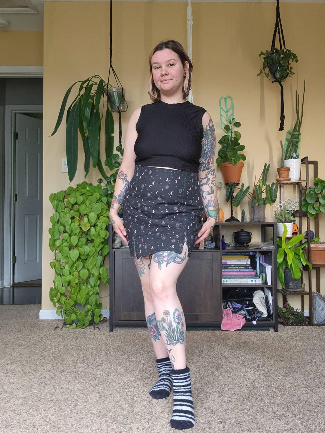 I used this pattern to make myself a denim skirt from old jeans. It was my first ever piece of clothing so I don’t know if the skirt came out boxy because of my skill level or because of the pattern. The instructions definitely could have been more thorough but I was able to find YouTube videos for what I needed when I got lost. I want to try to make it again now that I’m more comfortable.