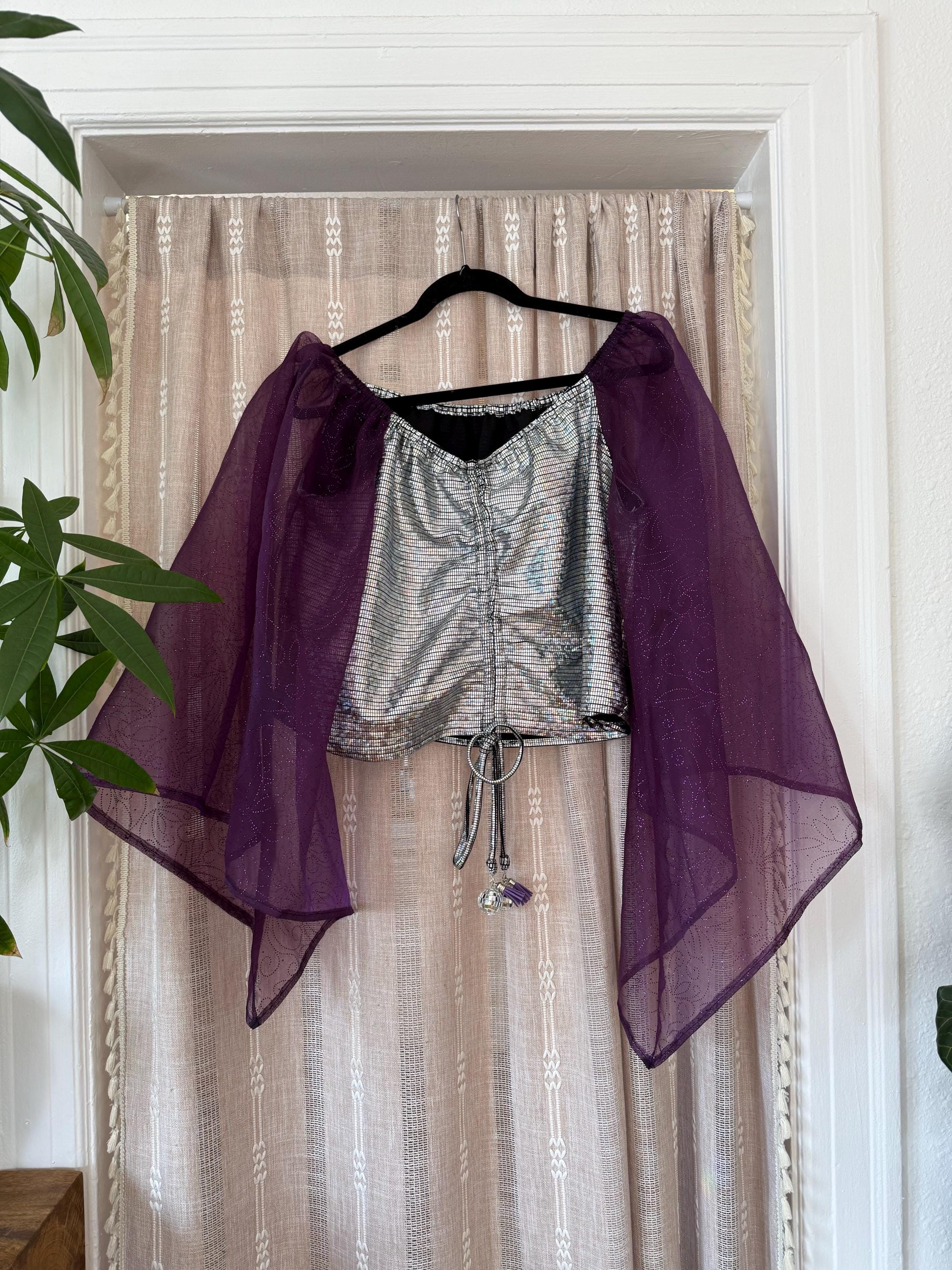 This sewing pattern blouse has a 70s vibes boho with long bell sleeve and offshoulder.