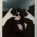 The outfit features a coordinated two-piece set with a playful yet elegant pattern: